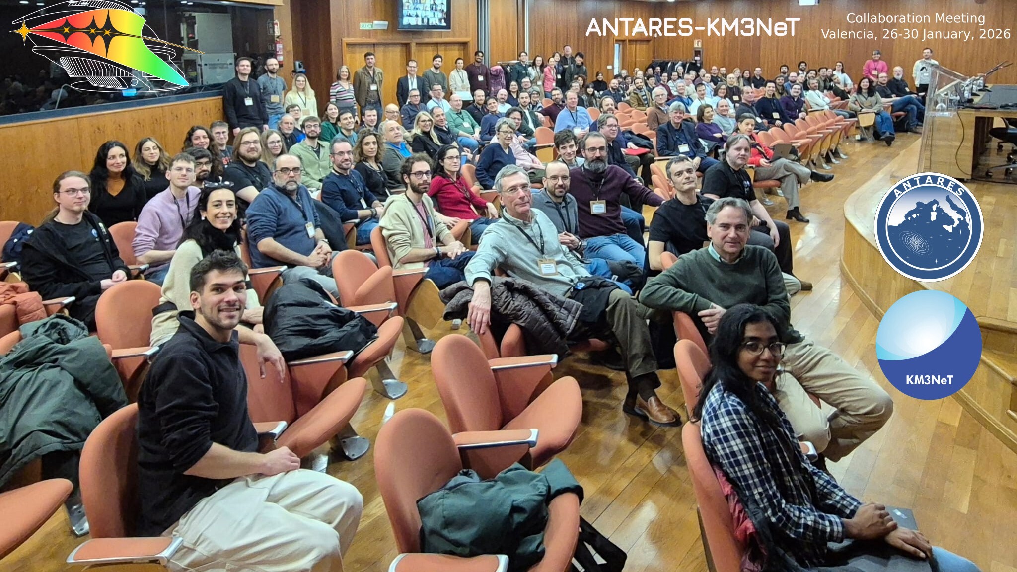 KM3NeT es un proyecto internacional centrado en la construcción y operación de telescopios de neutrinos en el Mediterráneo. En la reunión se discute el estado de los análisis de física, en un momento importante de cara a las conferencias de verano, como Neutrino 2026, una de las más grandes en el campo